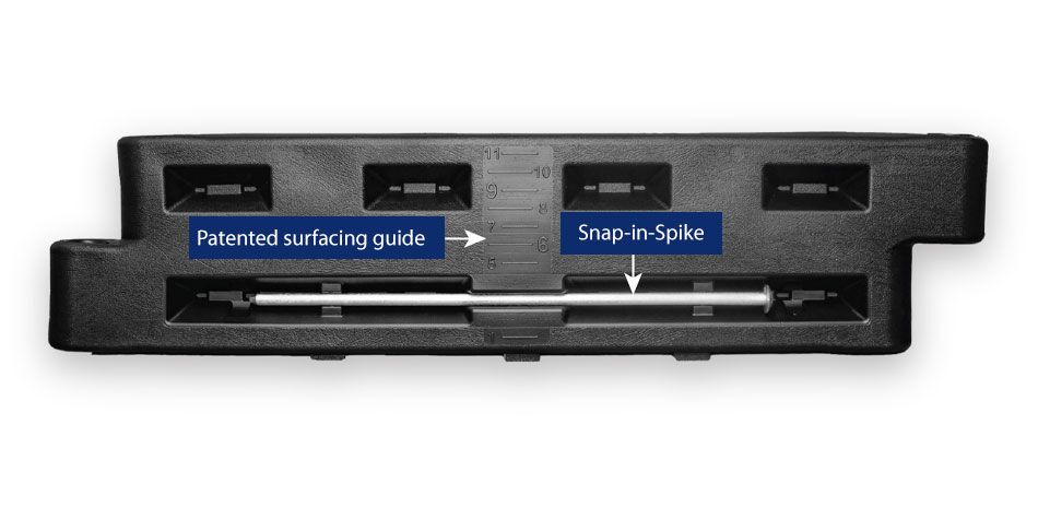 These interlocking borders are extremely durable yet lightweight and require far less labor than the conventional wood timbers. The surfacing guide serves as a ruler on your playground to ensure adequate levels of safety surfacing are maintained. With a quick glance, you can easily see how much surfacing is currently on your playground. The snap-in-spike allows for each border and spike to ship as one unit and reduces the chance of lost spikes in shipment and missing items upon delivery. Additionally, it makes for faster installation by keeping each border and spike together as one unit. Offering a 10-year limited warranty, our product is designed to take the place of wood timbers and offers a permanent, maintenance-free solution to keeping your playground safety surfacing where it belongs – on the playground!